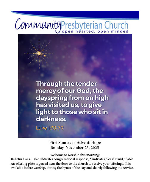 You are invited to worship at CPC (onsite and online) this Sunday at 9:30 am. The link for online worship is below. The bulletin can be found by clicking here or by clicking on the picture of the bulletin!